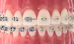 Traditional metal braces are the most common type of braces and are more comfortable today than ever before. Made of high-grade stainless steel, metal braces straighten your teeth using metal brackets and archwires. With metal braces, you have the option of adding colored elastics (rubber bands) for a more unique and colorful smile.